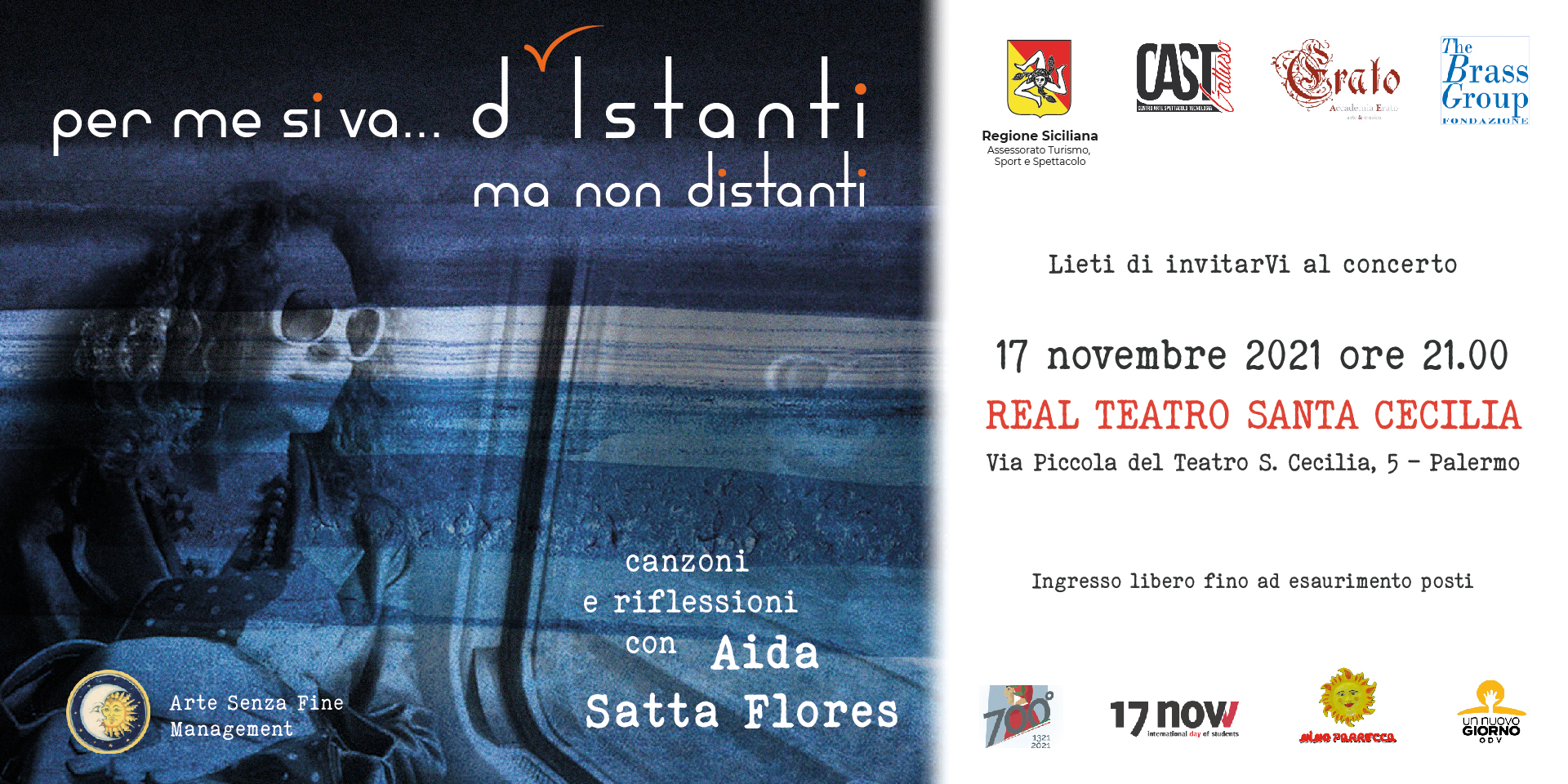 Il concerto di mercoledì 17 Novembre sarà un viaggio all’imbrunire di questa giornata speciale dedicata al diritto degli studenti a esprimersi, in quella “Divina commedia umana” che Aida ha dettagliatamente descritto e cantatonel DVD ‘d’Istanti’, che il 20 maggio ha donato a studenti e detenuti Siciliani, presentando il progetto in conferenza-stampa streaming dalla sede dell’Assessorato Regionale Istruzione e Formazione Professionale. Un filmato di 83 minuti, testimonianza delle due repliche dell’omonimo inedito concerto, al Teatro Greco di Tindari e alla Cattedrale di Palermo, che la pandemia permise di realizzare nel 2020, insieme ai Radiodervish e con la Direzione musicale del M° Valter Sivilotti.
