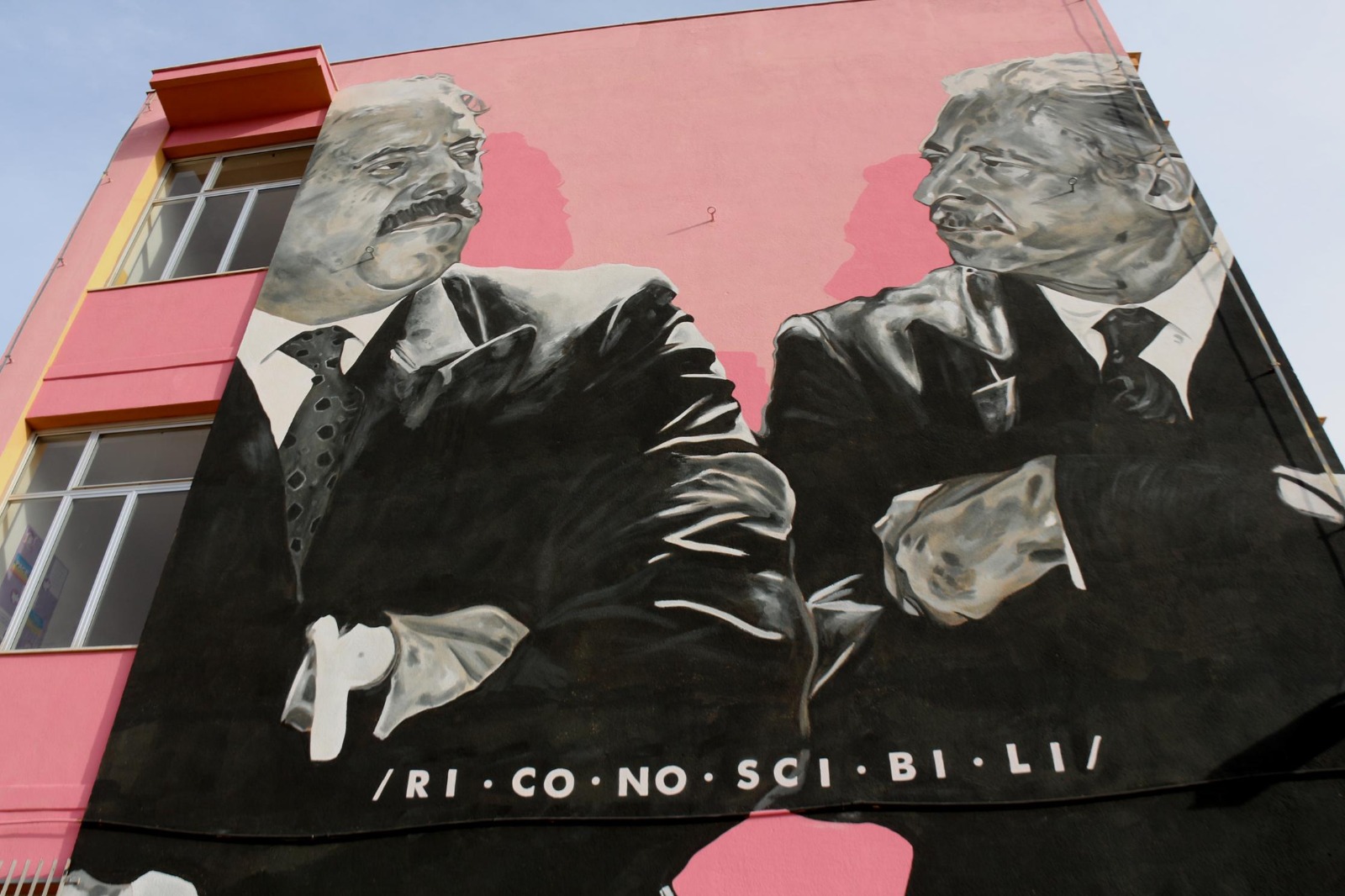 Il murale ritrae Giovanni Falcone e Paolo Borsellino e immortala i due eroi nella loro profonda fermezza di legalità e giustizia e di determinata lotta al crimine mafioso.