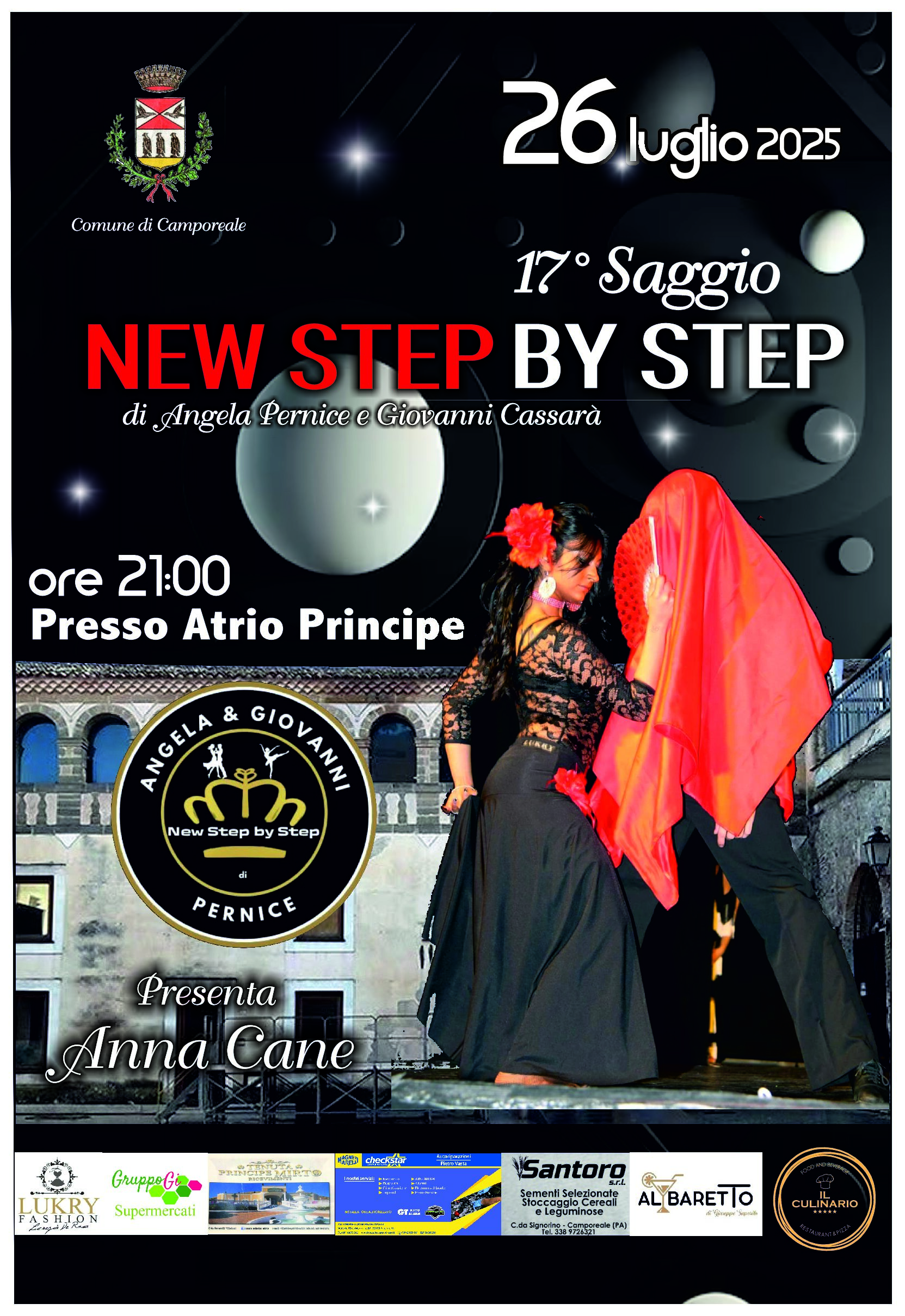 Sabato 26 luglio alle ore 21 presso l’Atrio Principe di Camporeale si terrà lo spettacolo della scuola di danza “New Step by step” di Angela Pernice e Giovanni Cassarà. Gli allievi si esibiranno in numerose coreografie e daranno prova del loro talento, della preparazione tecnica e dei risultati raggiunti, dopo un anno di allenamenti e lavoro.